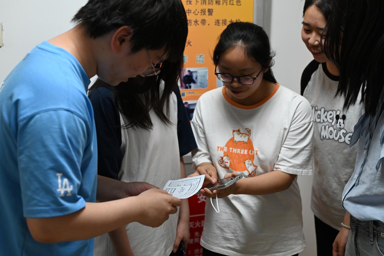 活动进行时,同学们八仙过海、脑洞大开,穿梭于学院的大堂小室,在各个序号卡可能出现的区域里仔细搜索。一声惊呼骤起,便可知序号卡被找到。十组四人小队争分夺秒,竞争激烈万分,常常可见多个小队同时奔向答题点;组内分工合作,同时搜寻多个序号卡的推测藏匿地,充分发挥每个队员的特长,诞生队内解谜担当、寻宝担当和答题担当等。