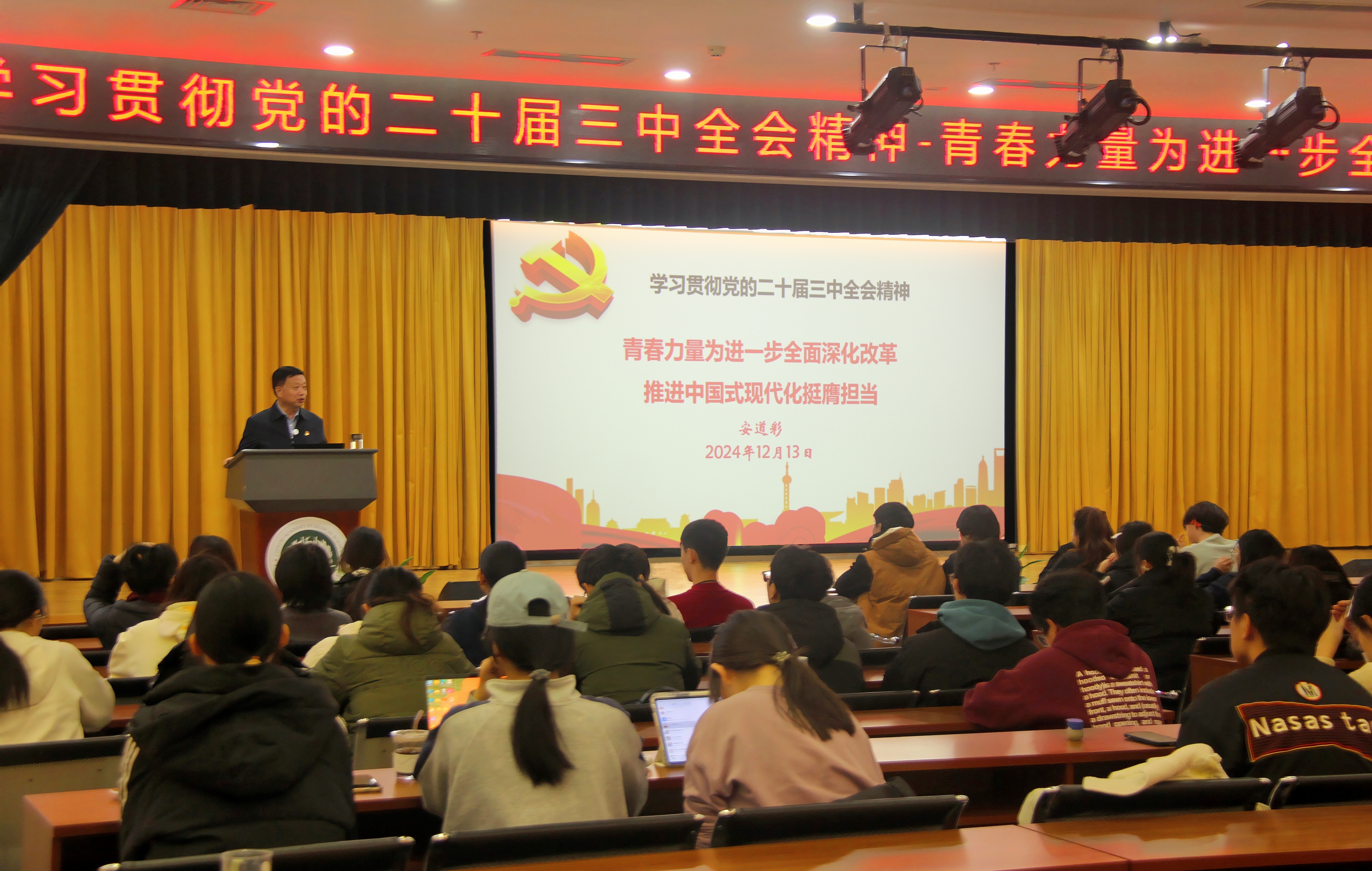 青春心向党,奋进新征程。12月13日中午,BV伟德官方网站团委在八大处校区毓禅报告厅组织开展“青春力量为进一步全面深化改革、推进中国式现代化挺膺担当”主题团课,由学院党委书记安道彩讲授党的二十届三中全会精神,23本、24本全体团员及入团积极分子参加团课。