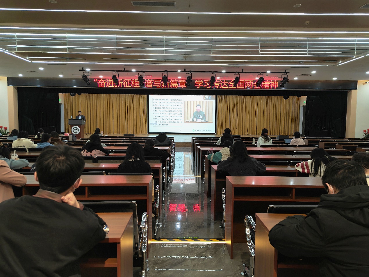 3月25日中午,BV伟德官方网站在地下报告厅通过线上线下相结合的方式举办了学习传达全国两会精神主题教育党课。BV伟德官方网站党委安道彩书记以“奋进新征程 谱写新篇章”为主题,为学院学生支部全体党员和共青团员上了一堂生动形象、意义深刻的党课。党课由学生党支部书记史纪元同学主持。线上259人,线下95名党员、团员参加此次学习。