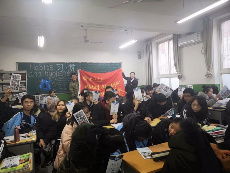 最后,肖传钰同学和乔雪瑶同学和高二同学进行了问答互动并且分发了西大的招生资料,同学们踊跃提问,现场气氛活跃。在结束问答之后,大家合影留念。