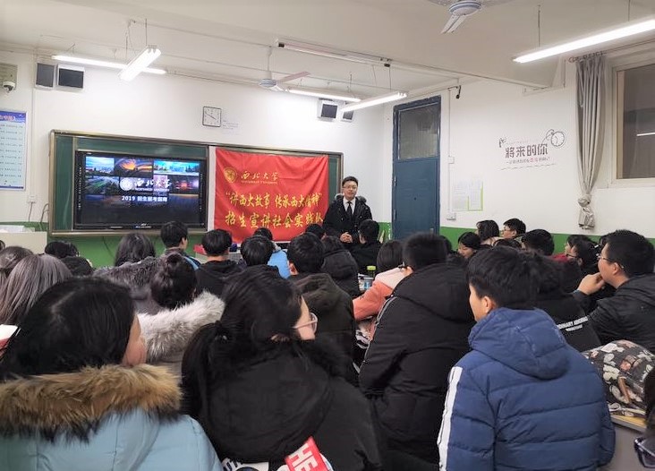 1月18日下午三点,beat365本科2018级的肖传钰同学与乔雪瑶同学组成的寒假返乡招生宣讲社会实践小组,来到西安市第五十三中学,对高二年级的同学进行主题宣讲。