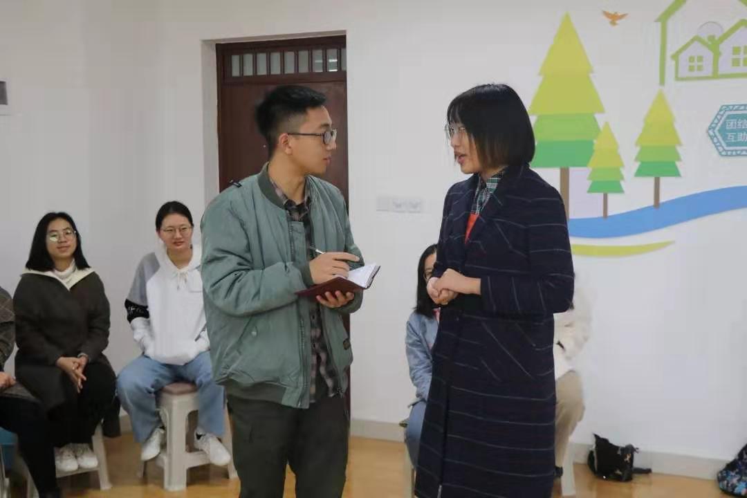 接下来,进入了情景模拟环节,同学们凭借自身认知,扮演心目中的党员形象,一组演绎了扶贫干部前往贫困户家中开展扶贫工作。另一组则演绎了身患重病的社区干部依然奋斗在第一线。