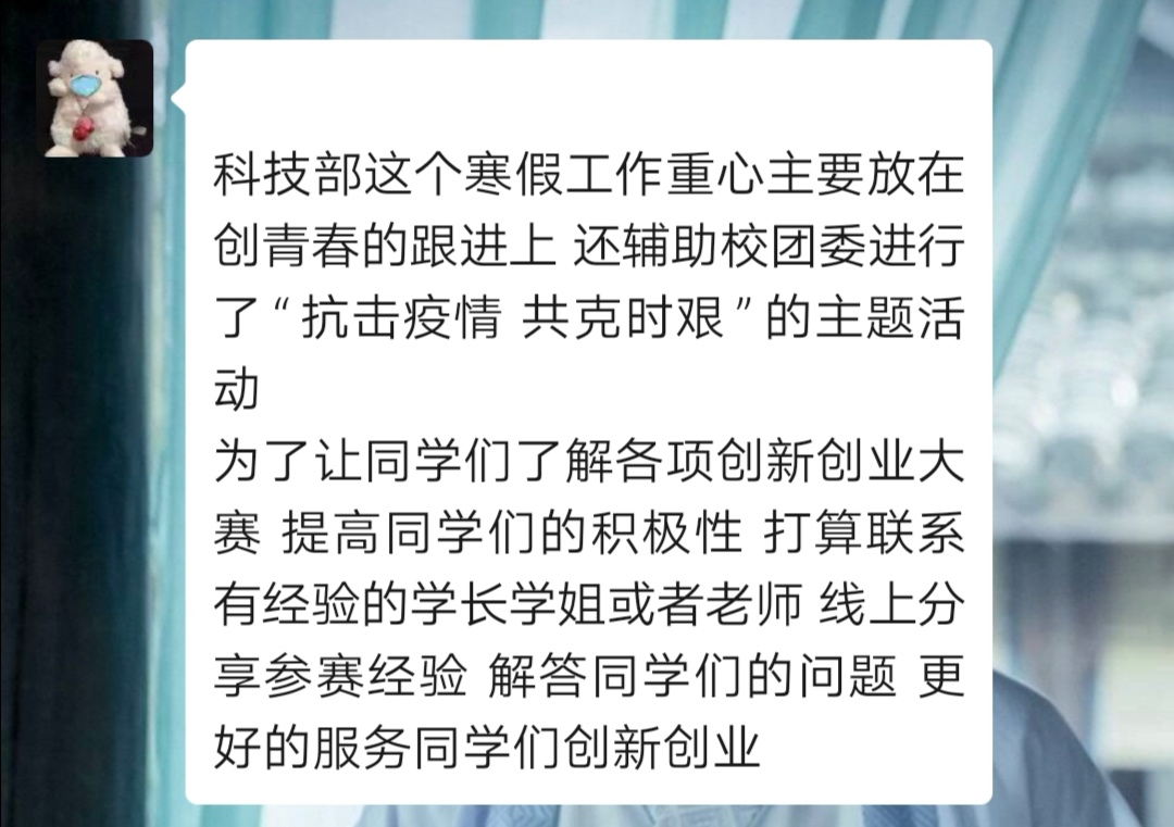 2020年3月11日,beat365亚洲版官网团委召开了线上工作会议,会议讨论了疫情期间团工作如何开展。院团委书记李鑫老师、院团委副书记汪真诚同学出席了此次会议,参加会议的有院团委各部门委员,会议由汪真诚同学主持。