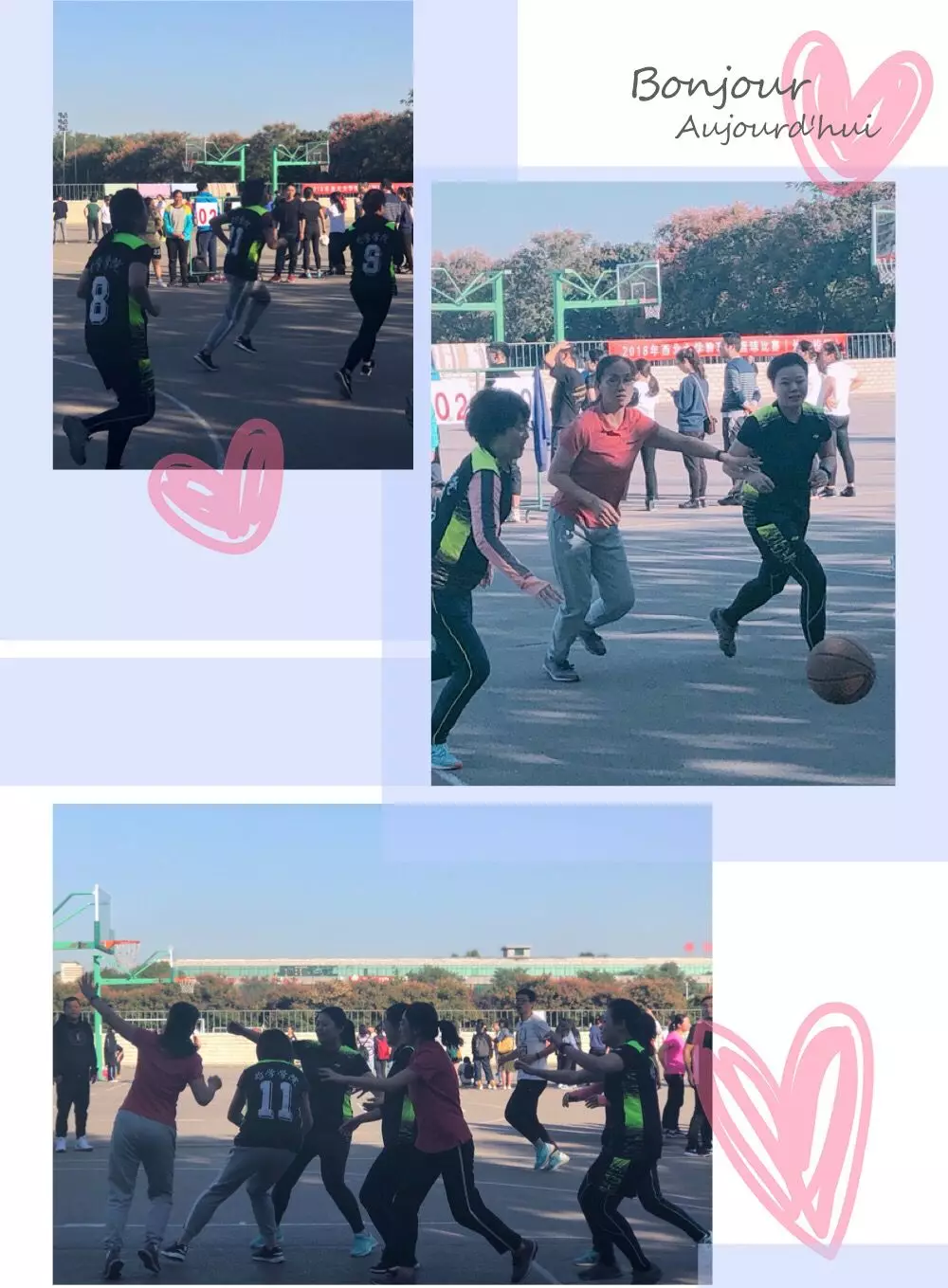 教职工篮球赛上,双方队员状态在线,场上队员积极拼抢,默契配合,尽情释放激情与活力。暂停休息,老师们开始商讨战术,随后比分你追我赶,交替上涨,扣人心弦,场上既有娴熟的运球和华丽的过人,也有精妙的配合和流畅的快攻。比赛异常激烈,气氛热烈,高潮迭起,博得观众的阵阵喝彩。
