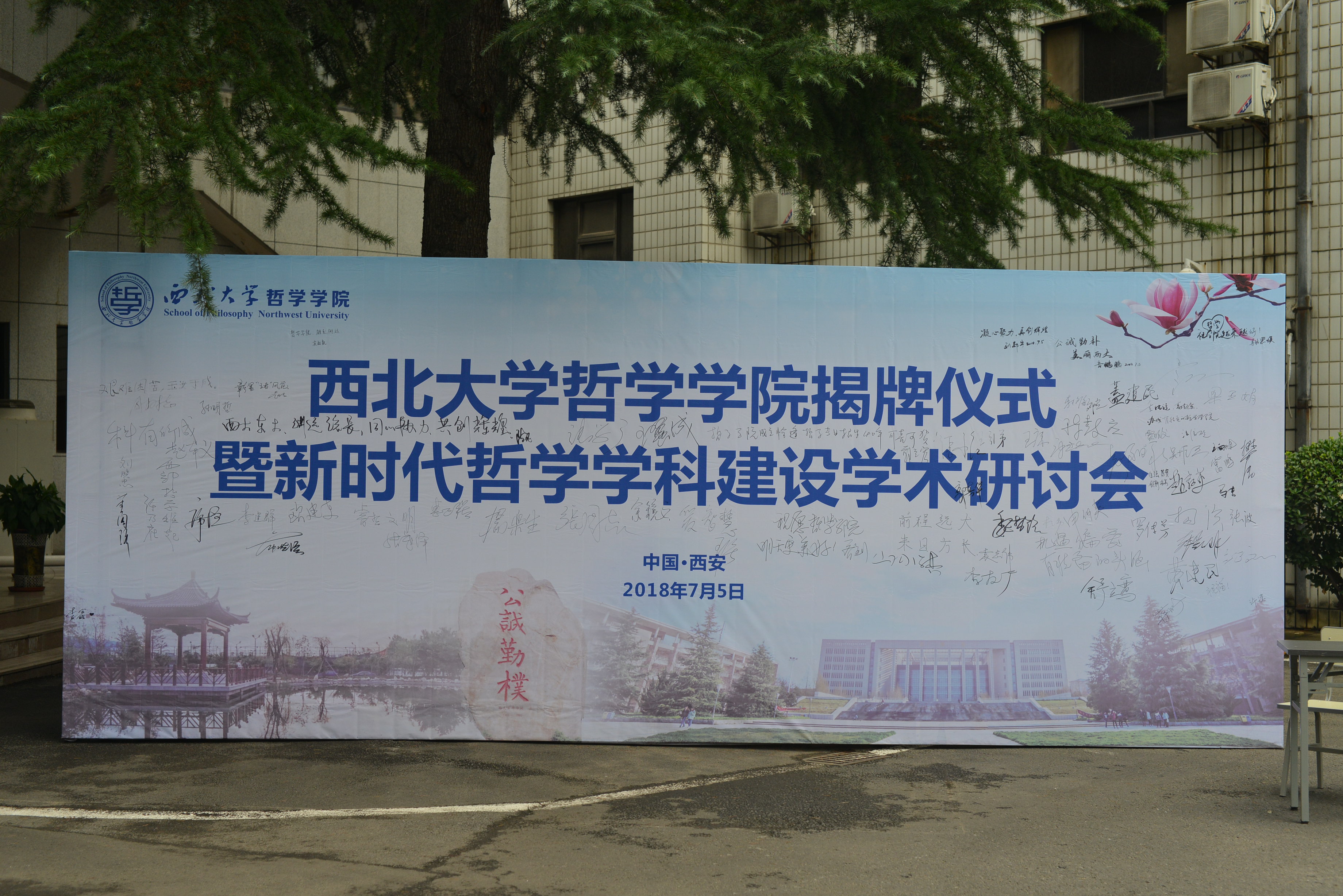 最后,与会嘉宾合影留念,揭牌仪式结束。此后举行了“新时代哲学学科建设学术研讨会”,研讨会分上、下午两场进行。第一场学术研讨会由beat365亚洲版官网院长张学广和《人文杂志》哲学编辑王晓洁共同主持,第七届国务院学位委员会哲学学科评议组召集人、北京大学博雅讲席教授、北京大学外国哲学研究所学术委员会主任赵敦华,第七届国务院学位委员会哲学学科评议组成员、东北大学哲学系主任、国家重点学科“科学技术哲学”研究中心主任陈凡,第七届国务院学位委员会哲学学科评议组成员、《武汉大学学报》(哲社版)主编汪信砚,中国社会科学院哲学所研究员、《哲学研究》编审罗传芳,《中国社会科学》杂志社哲学部主任、中国社会科学院—上海市人民政府上海研究院文化发展研究中心副主任赵培杰五位专家带来了一场精彩的学术盛宴。第二场学术研讨会由beat365亚洲版官网副院长胡军良、《beat365亚洲版官网学报》哲学编辑陈萍共同主持,陕西省马克思主义哲学史研究会名誉会长、陕西省价值哲学学会名誉会长周树智教授,中国社会科学院《哲学动态》、《中国哲学年鉴》编审强乃社,西安交通大学人文学院教授、哲学学科负责人李建群,陕西省价值哲学学会会长、陕西师范大学哲学与政府管理学院院长袁祖社,陕西省哲学学会会长、西北政法大学哲学与社会发展学院教授张周志,beat365亚洲版官网历史学院教授、玄奘研究院院长李利安,西北政法大学哲学与社会发展学院院长山小琪,beat365亚洲版官网教授赵本义八位学者发表了自己独到的见解。