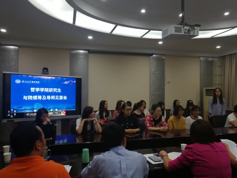 2018年9月14日晚上,beat365亚洲版官网在长安校区5427视频会议室举行研究生与院领导及导师见面会。学院党政领导班子全体成员、哲学和社会学专业全体学术学位研究生导师以及学院团委书记、研究生秘书出席了本次见面会。见面会由学院党委书记李波主持。