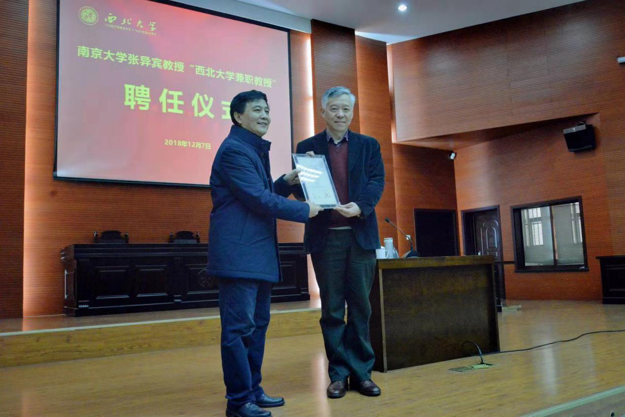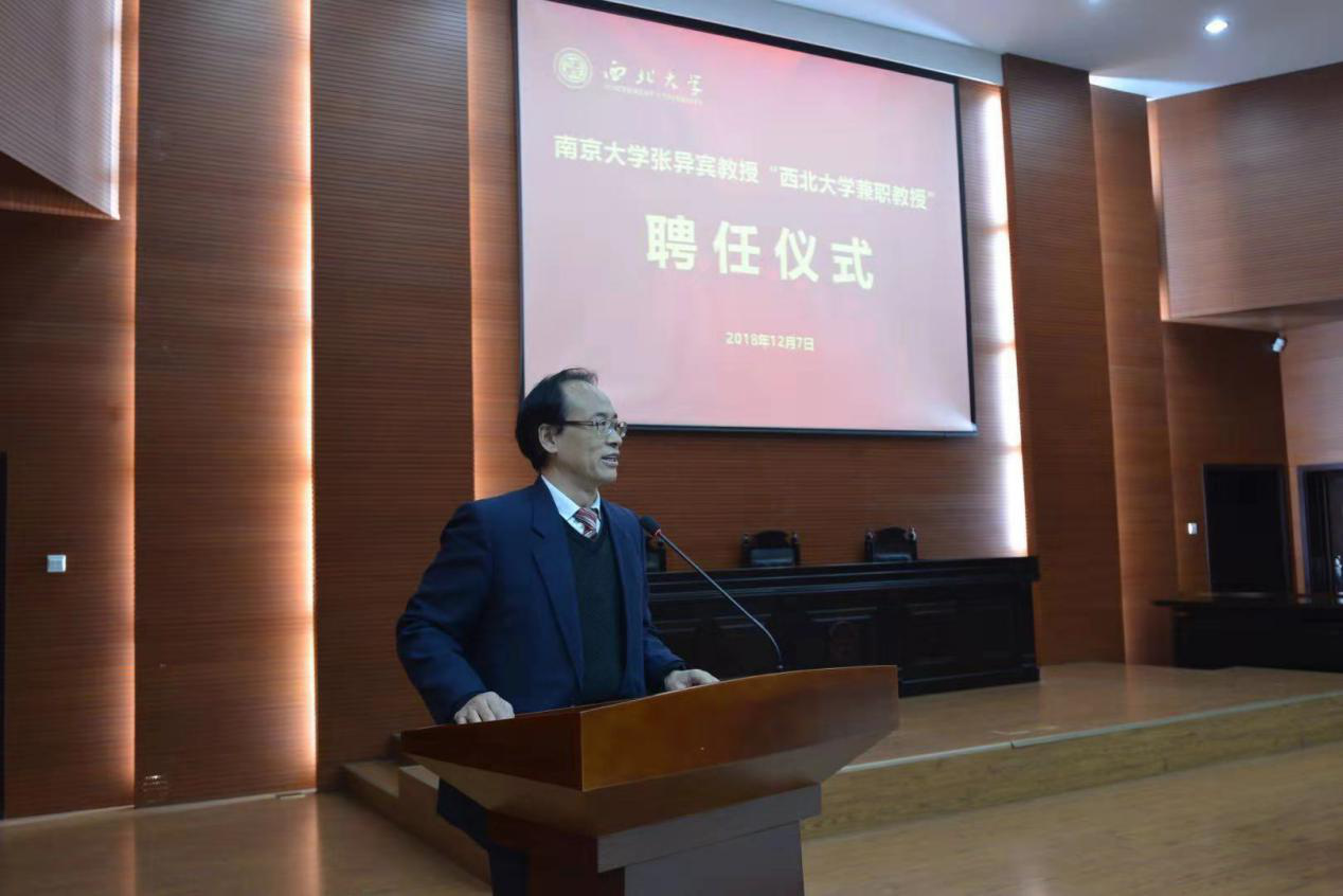 12月7日下午,南京大学原党委书记、特聘教授、博士生导师张异宾教授受聘我校兼职教授仪式在长安校区模拟法庭隆重举行。