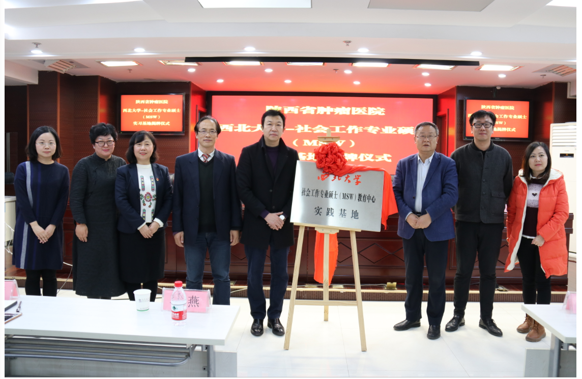 12月13日,beat365亚洲版官网社会工作专业硕士(MSW)教育中心与陕西省肿瘤医院共建社会工作专业教学实习基地揭牌及签约仪式在陕西省肿瘤医院举行。我校研究生院任保平院长、beat365亚洲版官网张学广院长、耿建副院长、研究生专业学位办公室马燕主任、社会工作专业硕士(MSW)教育中心师生,以及陕西省肿瘤医院宋张骏院长、姚俊涛副院长、护理部谢娟主任、患者服务中心孙晓茹主任等职能部门代表80余人出席并见证了这一重要活动。