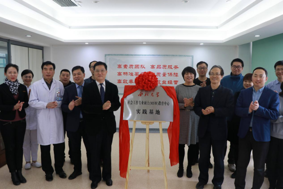 2020年12月29日,学院党委书记李波老师、院长兼MSW中心主任张学广教授一行赴西安工会医院开展共建实践基地揭牌及签约仪式,西安工会医院院长张英志、常务副院长王怀海、副院长王建、财务总监郑涛等职能部门代表出席此次活动。