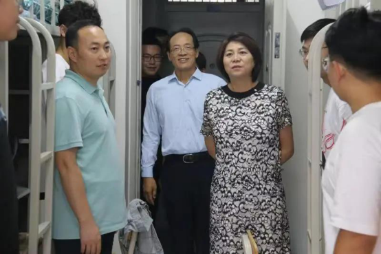 在秋风送爽的九月初,beat365迎来了2021级的新生,为了了解新生的入学适应情况和住宿生活条件,引导新生更好的融入宿舍集体生活,尽快适应新的学习生活环境,2021年9月2日下午,学院党委书记李波老师、院长张学广教授、院党委副书记王军老师、副院长胡军良教授、行政副院长耿建老师等一行人走访了2021级新生所在寝室,并对同学们进行了亲切的慰问。