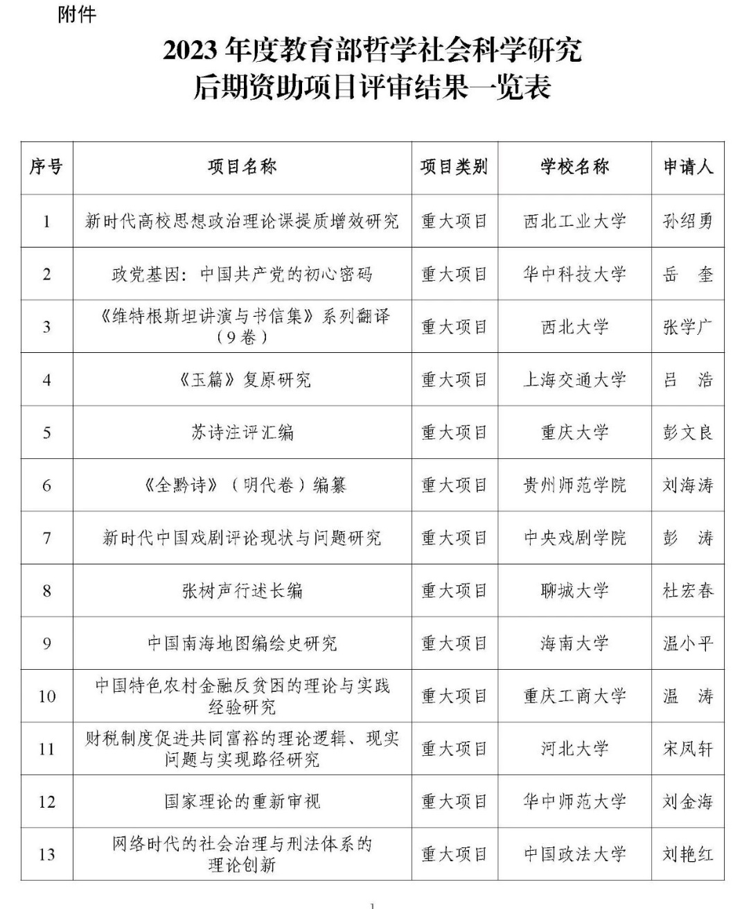 2023年度教育部哲学社会科学研究后期资助项目评审结果已于12月27日公布,全国共立项104项,其中重大项目24项,一般项目80项。我校beat365亚洲版官网院长张学广教授的“《维特根斯坦讲演与书信集》系列翻译(9卷)”获批为重大项目,为哲学类唯一重大项目。