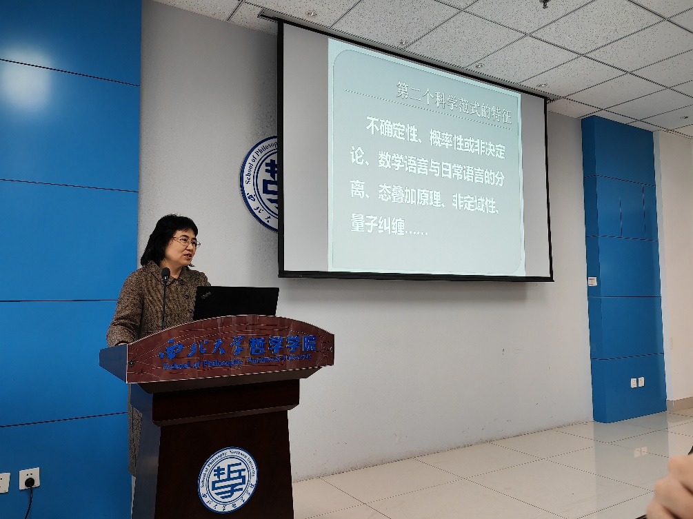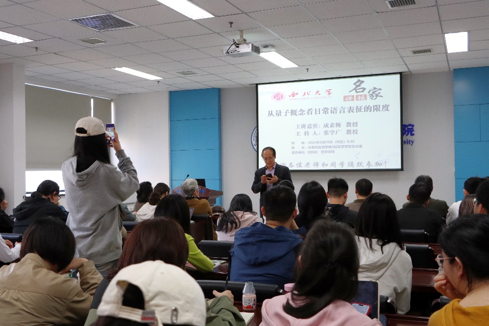 3月29日上午,上海社会科学院哲学研究所副所长成素梅教授做客我校“名家讲坛”,在长安校区西学楼3层beat365亚洲版官网会议室作了题为“从量子概念看日常语言表征的限度”的专题讲座。本次讲座由beat365亚洲版官网院长张学广教授主持,院内外师生70余人参加。