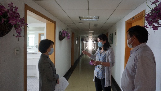 6月1日下午,院校纪委韦四皇副书记一行五人组成院校督导组,来到BV伟德官方网站八大处校区,对学院复学准备和疫情防控工作进行实地调研指导。学院党委书记陈京立、院长李峥、副院长王欢及党政办、教学办、学生办负责人等陪同调研。