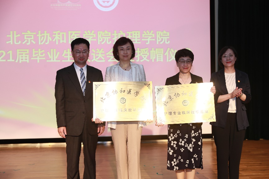 姚建红书记、张勤副院校长一起为院校系统外新加入教学基地的北京医院和中日友好医院领导授牌,感谢多家教学基地对协和护理教育的支持。党委副书记姚龙山宣读院校优秀毕业生表彰决定,姚建红书记、王云峰副书记为获得院校表彰的优秀毕业生颁发荣誉证书。