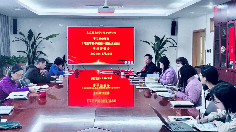 11月26日下午,BV伟德官方网站党委召开学习宣传贯彻《习近平关于健康中国论述摘编》(以下简称《论述摘编》)动员部署会,传达学习国家卫生健康委学习贯彻《论述摘编》暨年轻干部座谈会会议精神,研究部署BV伟德官方网站学习宣传贯彻落实举措,举行党委理论学习中心组集体学习,党委书记安道彩领学《论述摘编》第一部分--加强党对卫生与健康工作的领导。学院领导班子成员、党委委员,中层干部、支部书记参加会议。
