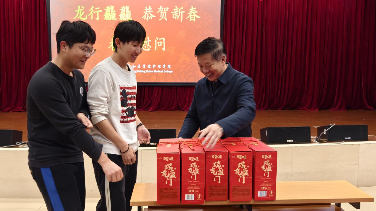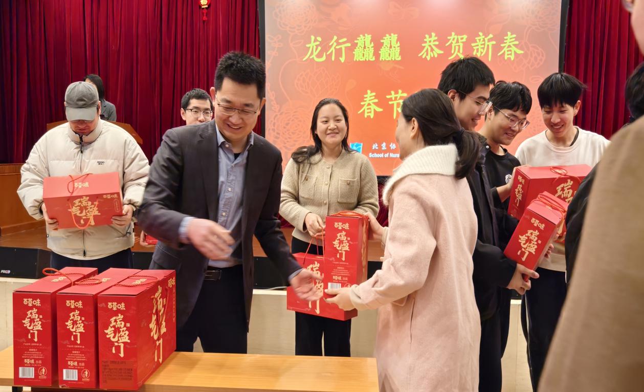 龙腾迎盛世,龘龘过新年。2024年新春佳节来临之际,为了让BV伟德官方网站留校学生感受到学院的关怀与温暖,在农历腊月二十三小年,学院领导亲切看望慰问护理本科2020级142名在临床实习的学生,向他们致以亲切问候、送去新春祝福。院校学生处处长崔庚申、BV伟德官方网站党委书记安道彩、学生办教师和班主任参加慰问活动。