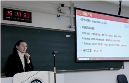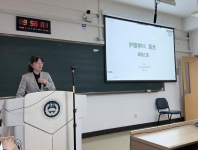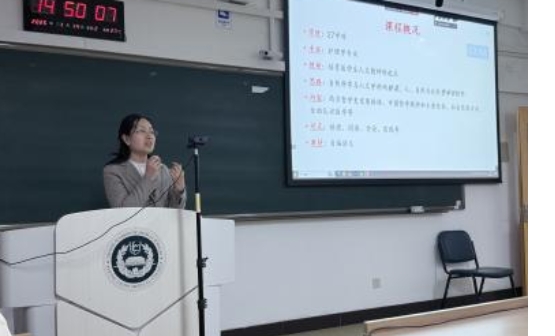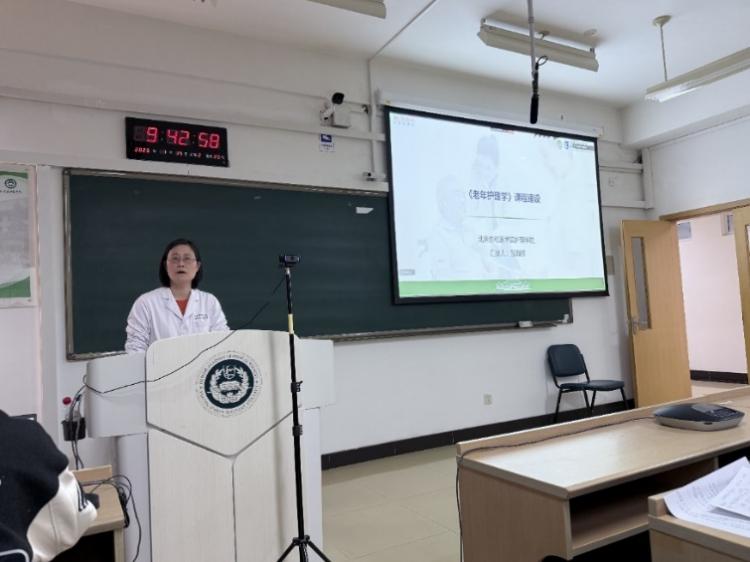 院校教师教学创新大赛一等奖获得者邹海欧教授从师资队伍、教学体系、教学资源、教学方法研究等方面分享《老年护理学》课程建设经验。