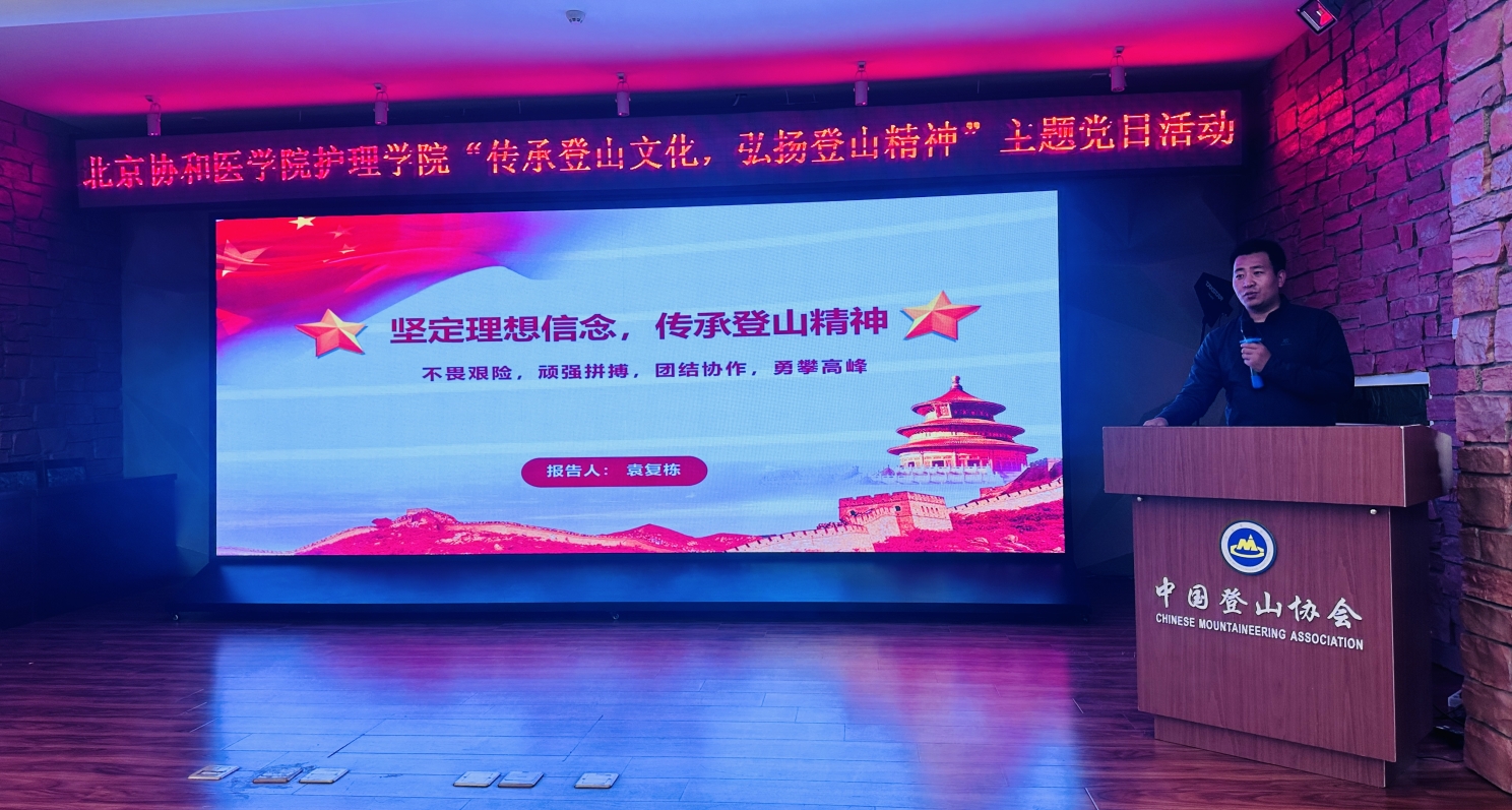 大家首先来到位于怀柔水库旁的国家登山训练基地,邀请国家体育总局登山运动管理中心产业发展部副主任、登山高级教练、两次登上珠峰的国家级运动健将袁复栋作“坚定理想信念,传承登山精神”专题报告。他从“艰难的起步、伟大的壮举,国旗飘扬三巅、加强对外交流,弘扬登山精神、助力高质量发展”三方面介绍了我国登山事业的发展历程和攀登珠峰的感人事迹。从最初的艰难起步,到如今的顺利登顶,每一次的历史性突破都见证了国家的崛起与民族振兴。“不畏艰险,顽强拼搏,团结协作,勇攀高峰”的登山精神,不仅是体育精神的体现,也是中华民族自强不息精神的生动写照,更是每一位党员干部在工作和生活中秉持和发扬的优良品质。