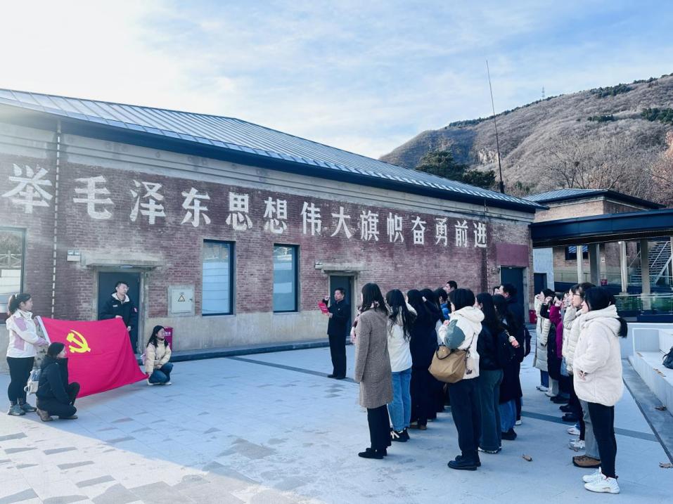 在纪念馆前举行新党员宣誓、老党员重温入党誓词活动,全体党员面对鲜艳的党旗庄严地举起右拳,铿锵有力的誓词在展厅内回荡,传递出全体党员不忘初心、牢记使命的坚定信念和决心。