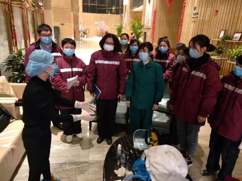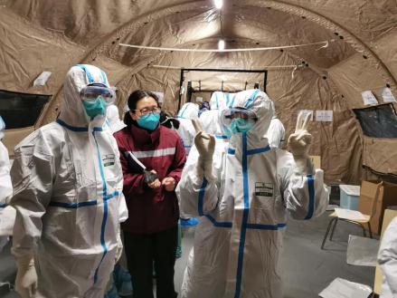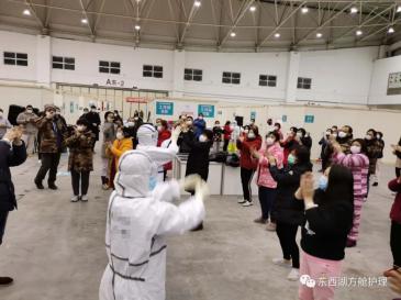 她带领的福建护理队勇于担当。2月7日晚,武汉东西湖方舱医院迎来第一批入院轻症患者。开舱那天,这支精神饱满的队伍被前来视察的中央督导组和国家卫生健康委领导表扬:“最早到位,最早上岗,主动学习武汉话”。福建护理队主要负责A舱B、D区240张床位的患者相关护理工作,每天四个班次,每班次平均工作6-8小时。