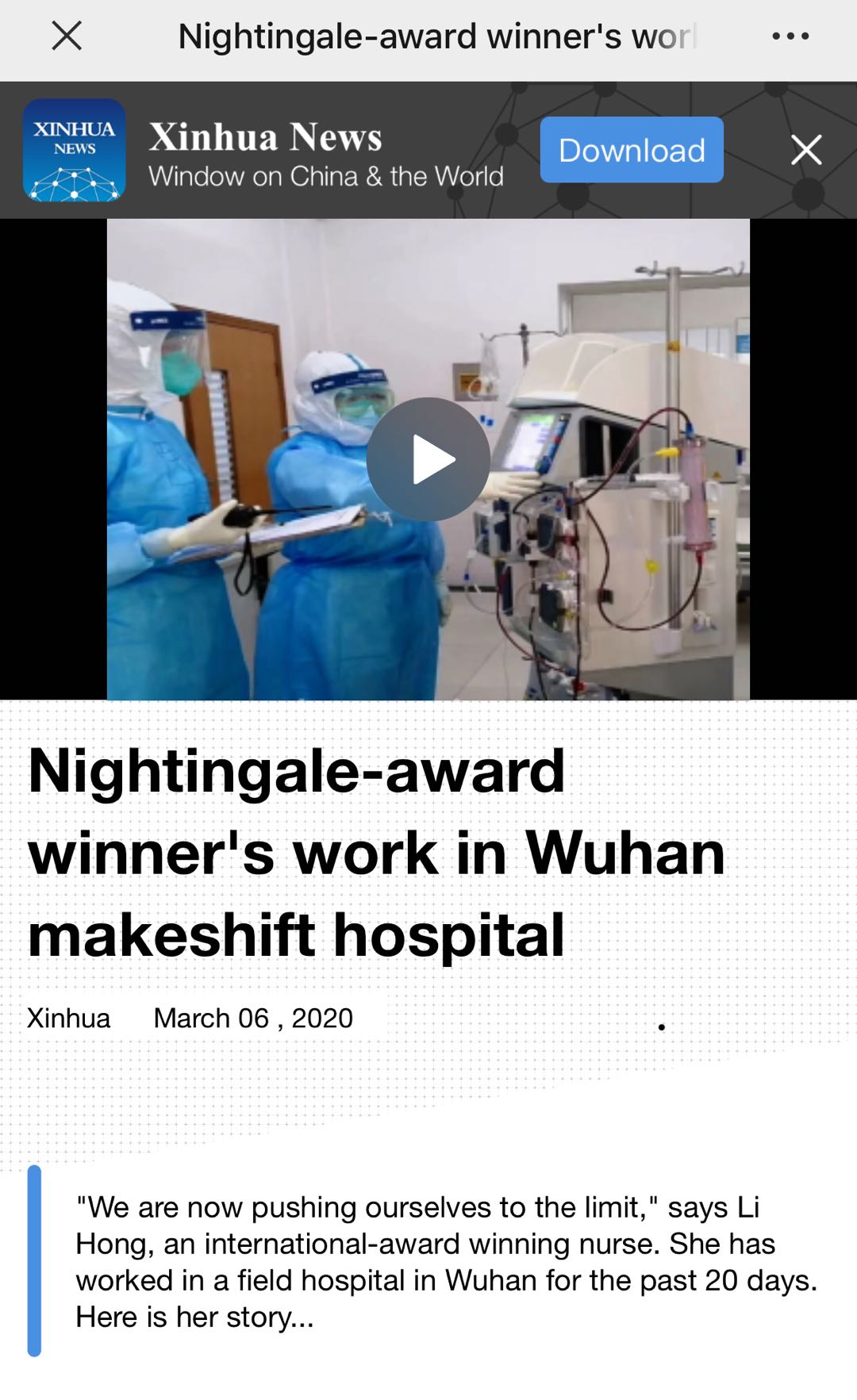 这就是可敬的李红教授。在抗击新冠肺炎疫情防控期间,积极推进了方舱医院护理专业化、同质化管理。2020年3月6日,她作为南丁格尔奖获得者,在接受新华社英文采访时告诉世界:这是一个流淌着爱、信心和希望的生命之舱。目前方舱医院虽然休舱了,李红教授带领团队秉承南丁格尔人文与科学的精神努力救治病人的爱与温暖永在。