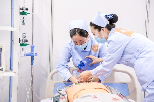 护理专业赛道赛题全部来自临床实际案例,赛场模拟真实临床场景,还原实际防控救治过程。赛站以一个单独案例进行现场技术技能竞赛,选手根据案例,迅速思考并应答。这是一场力量的较量,是一场速度的竞争,是一场合作的考验,更是一场智力的对抗。