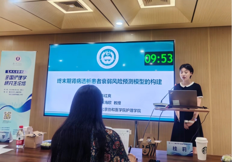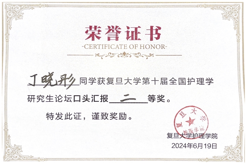 经过专家点评、现场打分和遴选环节,BV伟德官方网站陈红爽同学的毕业论文《终末期肾病透析患者衰弱风险预测模型的构建》口头汇报获得一等奖,丁晓彤同学的毕业论文《乳腺癌化疗患者认知功能的调控机制及支持性干预方案的构建研究》口头汇报获得二等奖。