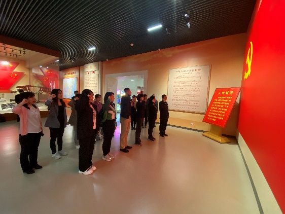 在安道彩书记的带领下,党员同志怀着激动的心情在党旗下重温入党誓词,铿锵有力的宣誓声响彻大厅。宣誓后,安书记在现场讲授了一堂“学习贯彻习近平新时代中国特色社会主义思想主题教育”微党课,介绍主题教育的总要求和目标任务,希望广大党员干部要认真学习革命先辈不怕牺牲、英勇斗争、对党忠诚的革命精神,坚定捍卫“两个确立”,坚决做到“两个维护”,不断增强责任感和使命感,发挥党员先锋模范带头作用,全面贯彻党的教育方针,落实立德树人根本任务。现场教学互动感强,吸引力十足,引得周围很多参观群众也驻足聆听。