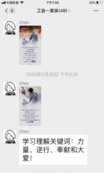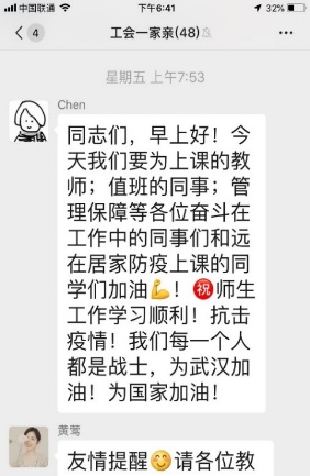 陈京立书记、李峥院长在学院工会微信群抗疫宣传