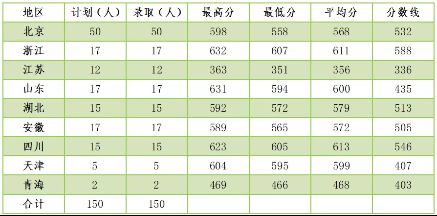 2018年护理学专业本科班计划招生150名,实际录取学生150名,计划完成100%。分布在北京、浙江、江苏、山东、安徽、湖北、四川、天津、青海9个省市。