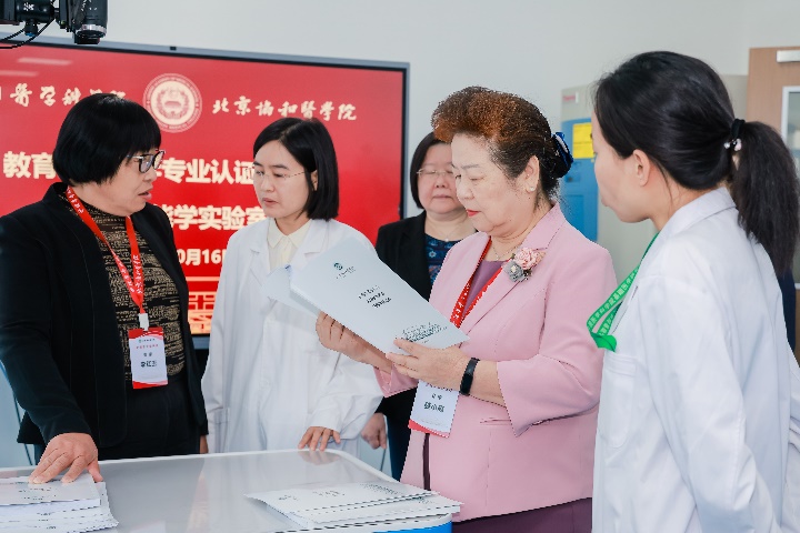 专家组一行考察了图书馆、基础学院人体解剖实验室、形态学实验室和机能实验室等教学环境,查看实验室使用记录、学生实验实践报告、作业等材料,和课程负责人、授课教师充分交流,全面了解考察实验教学情况。走访了临床学院、阜外医院和方庄社区卫生服务中心等临床教学基地,实地考察临床教学、社区教学情况,听取临床社区教学情况汇报,与临床和社区教师进行座谈,深入临床教学一线,观摩护理教学查房和护理本科学生临床护理操作,查阅临床教学资料,全面了解考察临床教学和社区实践教学情况。